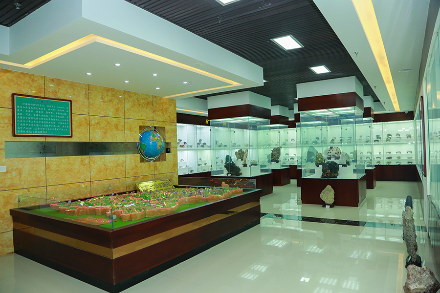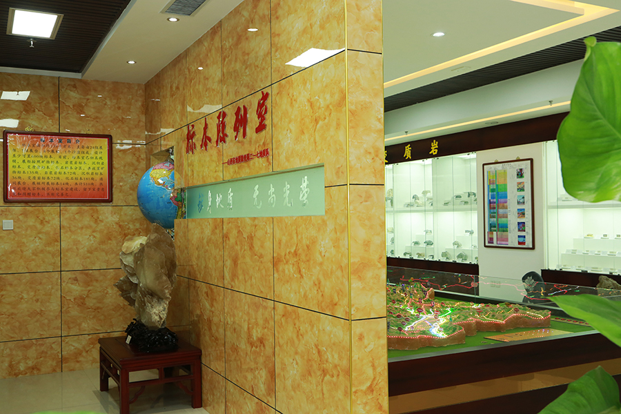 標(biāo)本室面積約135平方米,主要由24組展柜、5組展臺(tái)、8個(gè)展樁、1個(gè)沙盤組成,設(shè)計(jì)至少可置600塊標(biāo)本。目前,標(biāo)本室已初具規(guī)模,展柜按照礦物標(biāo)本、巖漿巖標(biāo)本、沉積巖標(biāo)本、變質(zhì)巖標(biāo)本、化石標(biāo)本分區(qū),共放置礦物標(biāo)本135塊、巖漿巖標(biāo)本72塊、沉積巖標(biāo)本36塊、變質(zhì)巖標(biāo)本72塊、化石標(biāo)本181塊,連同展臺(tái)、展樁所展標(biāo)本14塊,共計(jì)510塊。